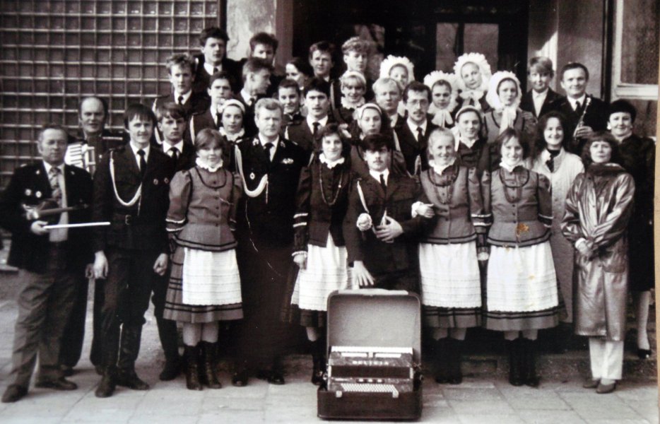 Ale tak się zdarzało. W swojej historii zespół przestawał funkcjonować kilka razy, na szczęście na krótko. Pierwszy kryzys nastąpił, kiedy Ania Sarnowska na czas jakiś rozstała się z zespołem, a jej następczyni (i wychowanka) nie bardzo sobie poradziła z motywowaniem. Ludzie przestali przychodzić na próby. I w takich momentach wkraczała pani Urszula – dobry duch zespołu. Kierownikiem grupy był natomiast Jurek Pałasz, który wtedy pełnił funkcję gminnego dyrektora od kultury. GOK-u jeszcze nie było (jako budynku), ale funkcja – owszem. Tańczyliśmy w szkole. Trochę później pojawiła się propozycja wyjazdu zespołu za granicę, do Francji i na prośbę pani Uli wróciła Ania, by zespół do tego wyjazdu przygotować. W tym momencie to akurat mnie chwilowo w zespole nie było. Pracowałem w Olsztynie i też zrobiłem sobie przerwę.
