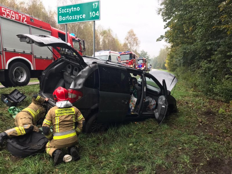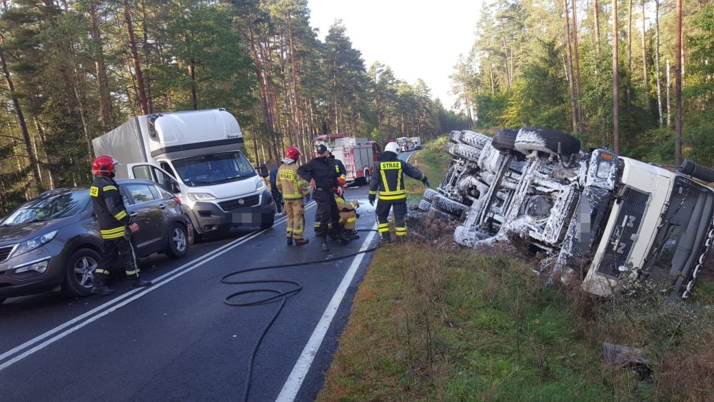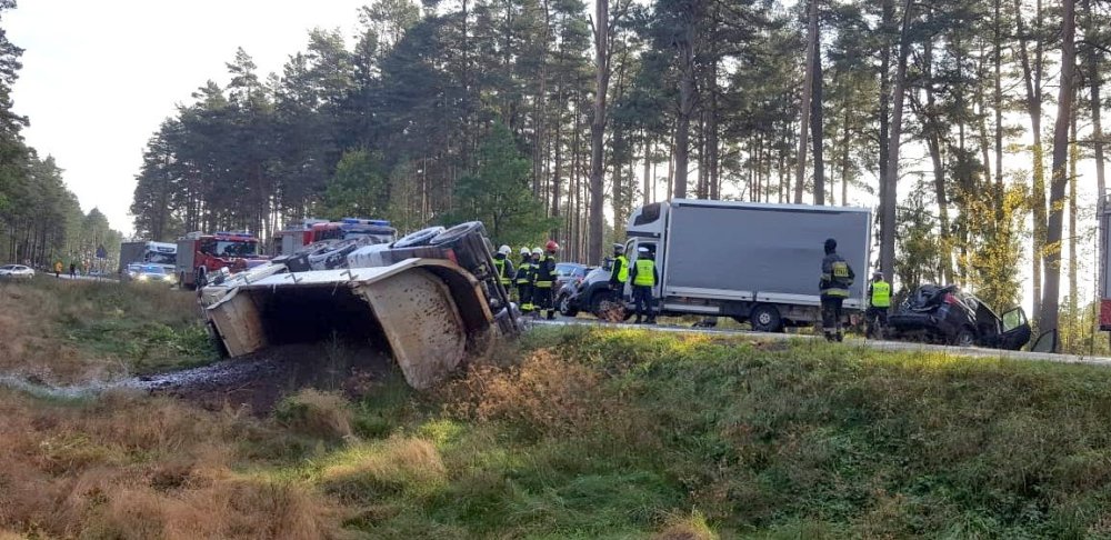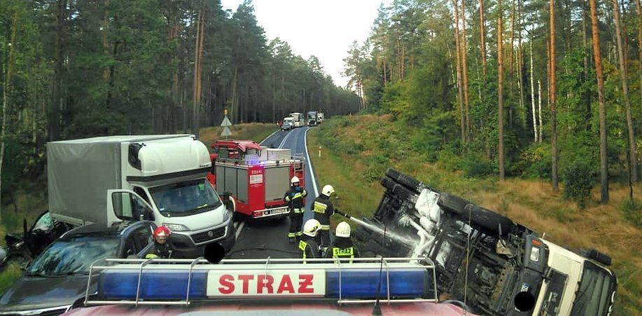 BMW x6 kierował 34-letni mieszkaniec Szczytna. Auto zostało zepchnięte do przydrożnego rowu i całkowicie zniszczone. Man zdołał jeszcze uderzyć fiata ducato kierowanego przez 40-letniego szczytnianina i kię sportage, za kierownica której siedział 31-letni Wielkopolanin. Ciężarówka przewróciła się na bok. Mimo dramatycznego obrazu, który zastali na miejscu kraksy ratownicy nikt poważniej nie ucierpiał.