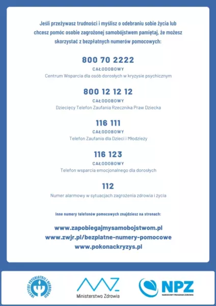 Statystycznie w Polsce każdego dnia życie odbiera sobie 15 osób. To tak, jakby każdego roku z mapy Polski znikała taka gmina, jak Wielbark, czy Pasym. Po każdym samobójcy zostaje rodzina i przyjaciele, a w ich głowach tysiące pytań bez odpowiedzi. – Nie ma dnia, bym nie zastanawiała się dlaczego to zrobił? Czemu nie dał sobie pomóc? A może to my czegoś nie zauważyliśmy?