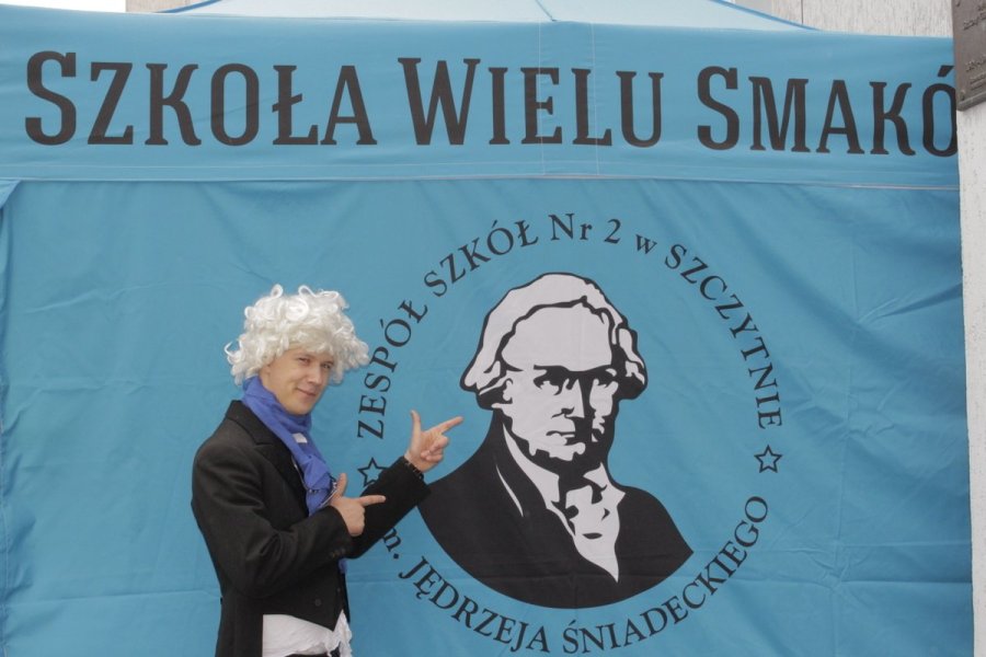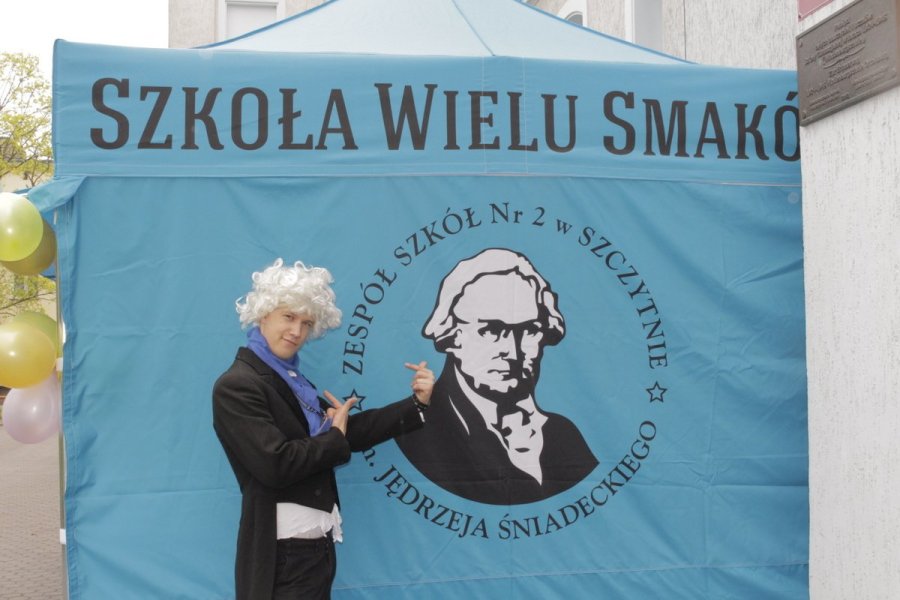 Przed głównym wejściem czeka na Was nasz patron Jędrzej Śniadecki. Drogi Gimnazjalisto, nie czekaj! Przyjdź do dwójeczki!