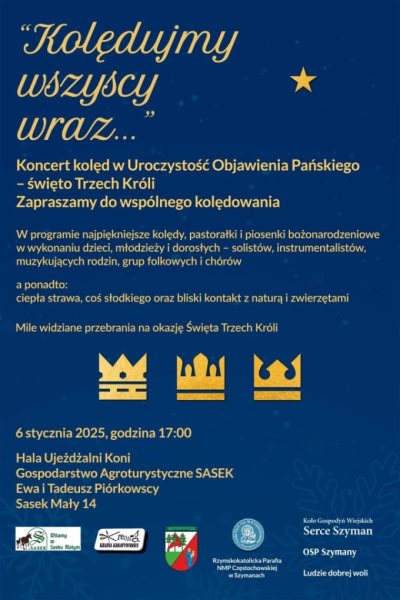 Już w poniedziałek, 6 stycznia o godzinie 17:00 hala ujeżdżalni koni w Gospodarstwie Agroturystycznym Sasek stanie się miejscem wyjątkowego wydarzenia. Koncert kolęd pod hasłem „Kolędujmy wszyscy wraz...”, organizowany z okazji Uroczystości Objawienia Pańskiego, to propozycja dla wszystkich, którzy pragną świętować Trzech Króli w muzycznej i rodzinnej atmosferze.