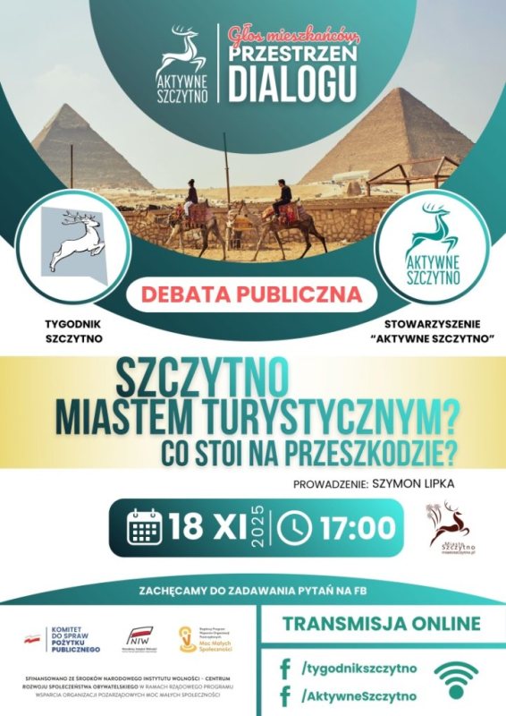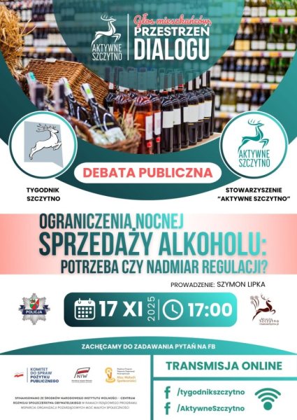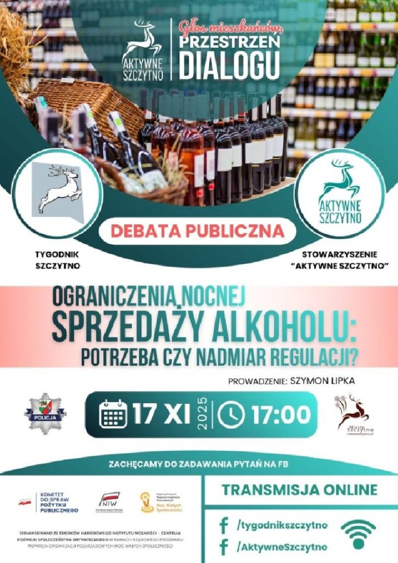 Ograniczenia nocnej sprzedaży alkoholu, turystyka i walka o przestrzeń w centrum. Trzy tematy, trzy wieczory i jeden cel: usłyszeć głos mieszkańców. Stowarzyszenie Aktywne Szczytno i Tygodnik Szczytno ruszają z cyklem debat, które poprowadzi Szymon Lipka.