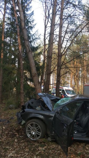 Do wypadku doszło w niedzielę, 25 marca. Ze wstępnych ustaleń wynika, że auto wypadło z drogi i potężnie uderzyło w drzewo. Co było tego powodem? To ustalają policjanci.