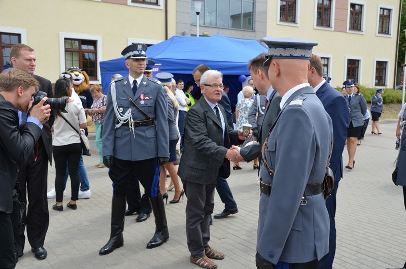 „Szanowni Państwo, to wyjątkowy moment zarówno dla Wyższej Szkoły Policji w Szczytnie, jak i dla każdego z Państwa osobno. Jest to szczególny awans w karierze policyjnej, ponieważ to Prezydent Rzeczypospolitej Polskiej na wniosek Ministra Spraw Wewnętrznych i Administracji mianuje Was na stopień oficerski podkomisarza Policji (…). Chciałbym paniom policjantkom i panom policjantom złożyć przede wszystkim gratulacje. Jesteście na pewno z tego dumni, macie ku temu powody. Dumni są także Wasi bliscy. My też jesteśmy z was dumni, ale wiążemy z wami także wielkie nadzieje. To są nadzieje na udział w transformacji polskiej Policji. To są nadzieje na to, że polska Policja będzie stawała się coraz bardziej taką formacją, jakiej potrzebuje społeczeństwo. Ten proces trwa. Policja jest przywracana społeczeństwu. Chciałbym podkreślić, że Policja musi być blisko ludzi. Mówiłem o tym rok temu w tym miejscu. Policja musi być dla ludzi (…). Wykonując codzienne czynności i obowiązki służbowe trzeba pamiętać o słowach składanej policyjnej przysięgi. Chciałbym podkreślić, że działacie w imieniu państwa, nosicie mundur, dysponujecie środkami przymusu bezpośredniego. Niech te przywileje i działania przekładają się tylko na dobre imię polskiej Policji. Bezpieczeństwo jest jednym z nadrzędnych wartości (…)”. Na zakończenie Pan Jarosław Zieliński przekazał zebranym i nowo mianowanym funkcjonariuszom najlepsze życzenia.