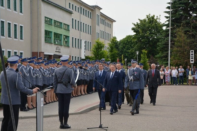 Ten dzień to ukoronowanie trudu i wysiłku. Wiem, jak wiele trudu trzeba włożyć w to, żeby stanąć na tym placu i odebrać nominację na pierwszy stopień oficerski. Serdecznie Wam tego gratuluję. To bardzo ważny dzień dla polskiej Policji. Tych 345 funkcjonariuszy, którzy zostali mianowani w dniu dzisiejszym na pierwszy stopień oficerski, to 345 potencjalnych przełożonych polskiej Policji. Polska Policja potrzebuje dzisiaj przełożonych, którzy bezwzględnie przestrzegają roty policyjnego ślubowania, którzy przestrzegają prawa i zasad etyki zawodowej (…).