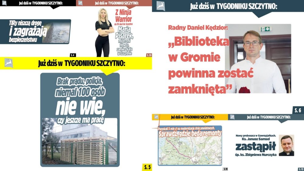 Co tydzień w kioskach, sklepach i punktach sprzedaży w całym powiecie szczycieńskim czeka na Ciebie świeża porcja wiadomości, które dotyczą Twojej okolicy. „Tygodnik Szczytno” to nie tylko gazeta – to kronika wydarzeń, które kształtują codzienność mieszkańców. Jeśli chcesz wiedzieć, co dzieje się w Twoim mieście, gminie, wiosce, poznać kulisy lokalnej polityki, przeczytać historie, które poruszają i angażują – sięgnij po najnowsze wydanie.