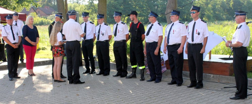 Po mszy świętej w intencji strażaków wiele słów pochwał i podziękowań za bezinteresowną pomoc ludziom, ratowanie ich życia i mienia skierowali do ochotników licznie przybyli goście: przedstawiciele samorządów oraz reprezentanci zawodowych struktur strażackich. Wyróżniający się strażacy otrzymali odznaczenia i medale, a orkiestra podkreślała tuszem każdy akt dekoracji.