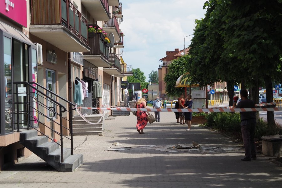 Do incydentu doszło we wtorek, 8 czerwca około godziny 14. Chodnikiem przy ulicy Polskiej, mniej więcej na wysokości Zespołu Szkół nr 2 w Szczytnie szła 37-letnia kobieta szła z 8-miesięcznym dzieckiem w wózku. W pewnym momencie od balkonu oderwał się kawał gzymsu. Runął na chodnik.