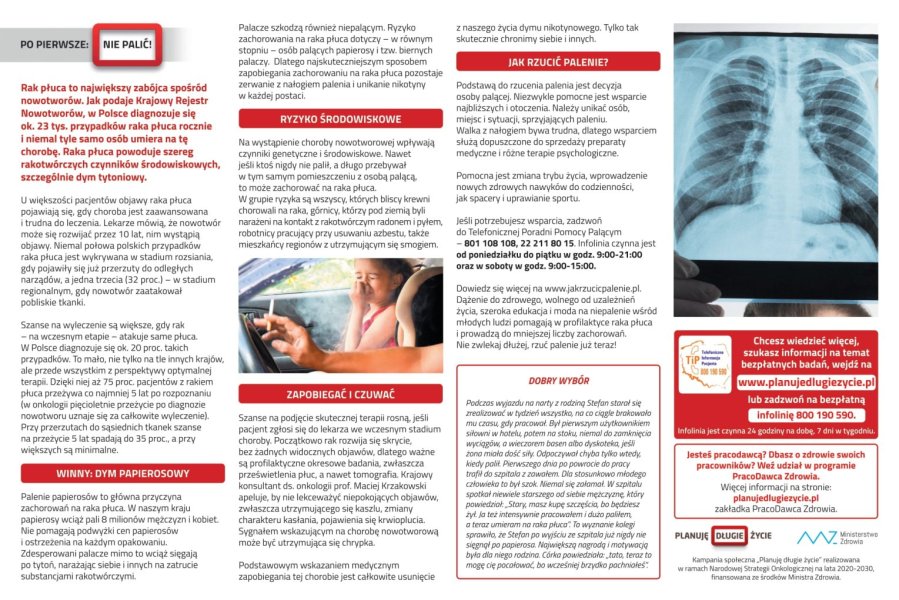 Rak płuca to najgroźniejszy z nowotworów. Ile czasu się rozwija? Co na temat szans na wyleczenie mówią statystyki? Jak ważna jest wczesna diagnostyka? Na jakie objawy zwrócić uwagę? Czy rzucenie palenia może uratować nasze życie? Sprawdź – przeczytaj nasz artykuł. #PlanujęDługieŻycie #Profilaktyka #NSO
