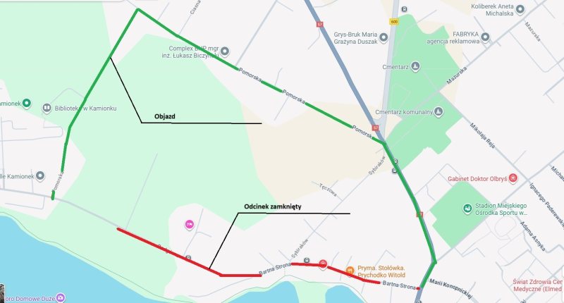 Objazd do Kamionka i Szczycionka poprowadzony zostanie ulicą Suwalską, zgodnie z wyznaczoną trasą.