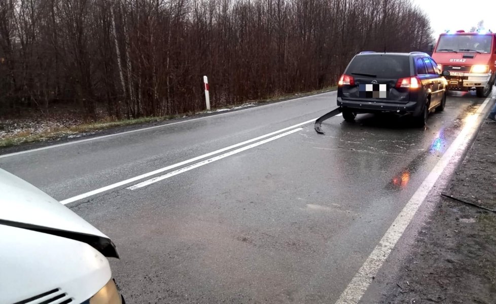 Uszkodzenia w Oplu: połamany tylny zderzak, pogięta klapa bagażnika, pęknięty klosz kierunkowskazu lewego, pęknięty klosz prawego światła cofania oraz światła przeciwmgłowego. Uszkodzenia w Mercedesie: połamany zderzak przedni, połamany grill, podgięta pokrywa silnika, wygięty lewy błotnik przedni. To tylko kilka z nielicznych uszkodzeń pojazdów, które zderzyły się na DK-57 w okolicach Linowa, gm. Dźwierzuty. Jak ustalili mundurowi 21-letni kierowca Mercedesa nie zachował bezpiecznej odległości od poprzedzającego go Opla. Kierowcy! Noga z gazu! Pojawił się pierwszy śnieg! Na drogach ślisko!