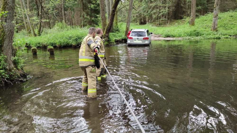 Przy pomocy wyciągarki samochodowej strażacy wyciągnęli auto z wody. Na miejscu pojawili się strażnicy leśni oraz policjanci, którzy wyjaśniają, co dokładnie wydarzyło się w tym miejscu. Policjanci szukają właściciela samochodu, być może on rzuci na tą sytuację nieco więcej światła.