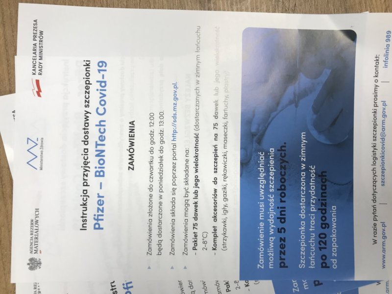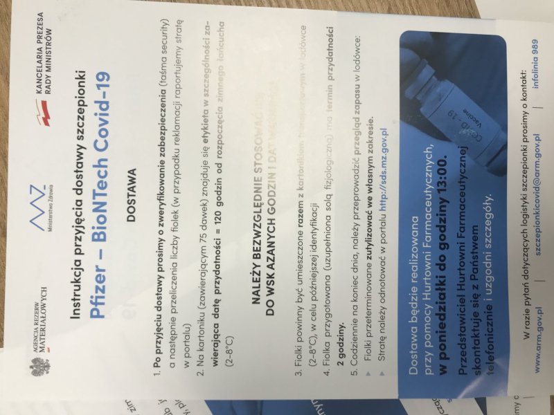 Szczepionki przeciw covid19 dotarły do Szczytna, w środę 30 grudnia. Łącznie 150 dawek w 30 fiolkach.