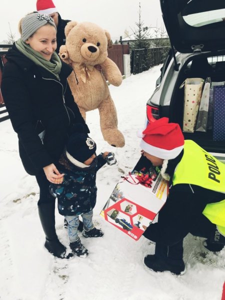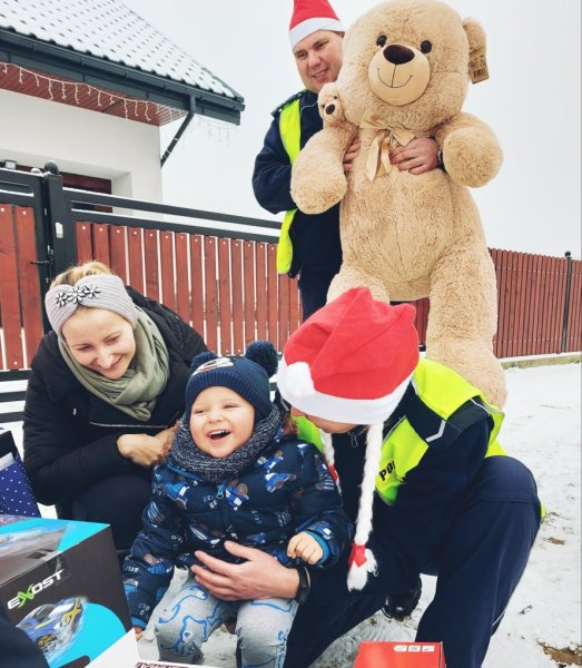 o powrót do zdrowia śledzi każdy, kto poznał jego historię. Jaś to jego starszy brat, który wspiera 3 latka w codziennych zajęciach umilając mu niejedne trudne chwile, przez które chłopiec musi przebrnąć, aby wrócić do pełnej sprawności. Wzajemna troska, jaka panuje w rodzinie, miłość, wsparcie i otwartość na potrzebnych innych potrzebujących porusza nasze serca na każdym kroku. W dzień Wigilii szczycieńscy policjanci mieli wspaniałą okazję, aby ich odwiedzić i obdarować upominkami.