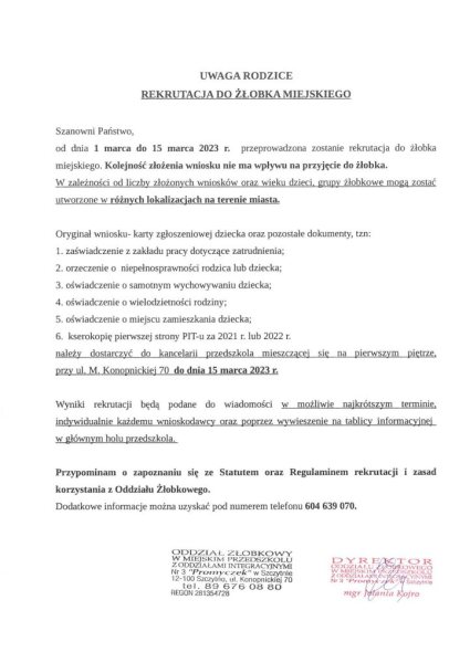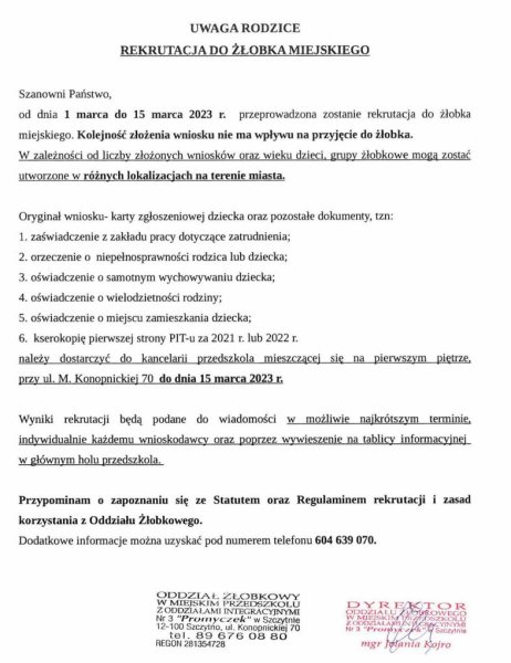 Pierwszego marca wystartuje rekrutacja do żłobka w Szczytnie. Zapisy potrwają do 15 marca. Kolejność złożenia wniosku nie ma wpływu na przyjęcie do placówki. Jak informują miejscy urzędnicy grupy żłobkowe mogą być utworzone w różnych lokalizacjach miasta. Poniżej szczegóły rekrutacji.