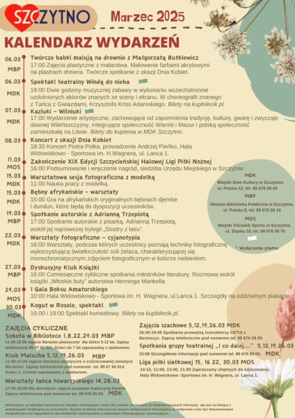 Miejski ratusz opublikował kalendarz wydarzeń na marzec, a atrakcji nie zabraknie. W planie m.in. koncerty, spektakle, warsztaty i sportowe emocje.