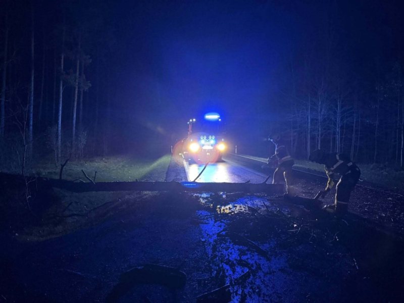 Już o godz. 2:08 druhowie z OSP Pasym ruszyli do powalonego drzewa w rejonie PKP w Pasymiu. Kilkanaście minut później, o 2:22, zastęp OSP Jedwabno usuwał drzewo blokujące drogę wojewódzką nr 545 na wysokości miejscowości Kot.