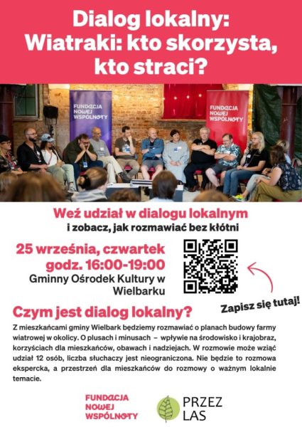Otwieramy przestrzeń do rozmowy i wspólnoty. W dniu 25 września 2025 roku mieszkańcy gminy Wielbark porozmawiają o planach budowy farmy wiatrowej w ich okolicy – to także przestrzeń głębokiego dialogu i próby zrozumienia perspektywy zwolenników i przeciwników realizacji inwestycji. (publikacja płatna)
