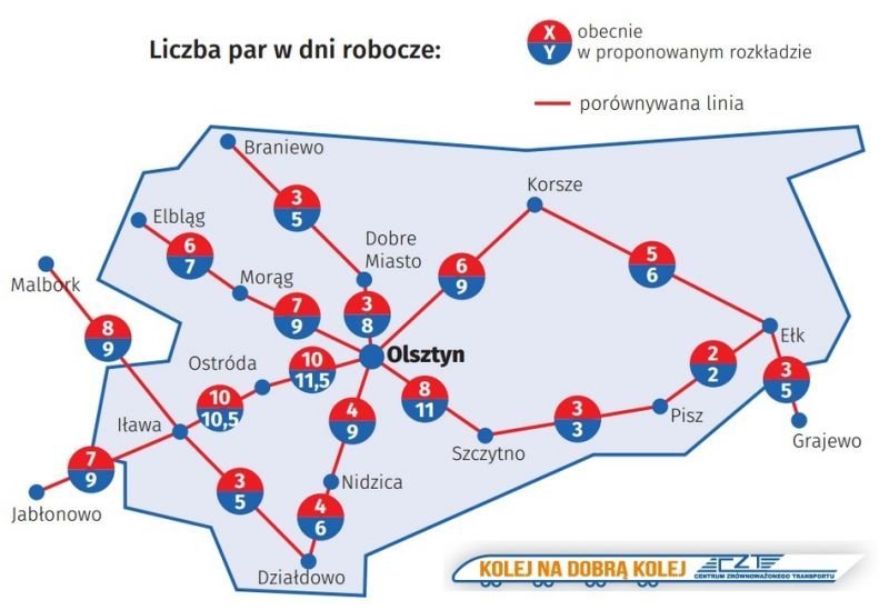 Centrum Zrównoważonego Transportu szczegółowo wylicza, że optymalizacja kolejowych kursów w województwie zwiększy ich liczbę na każdej trasie przy bardzo niewielkim wzroście kosztów. W raporcie (dostępnym pod adresem: http://czt.org.pl/images/petycja/warminsko-mazurskie/Warmisko-Mazurskie-raport-2016-03-01.pdf) wskazano, że zamiast 8 połączeń Szczytna z Olsztynem mogłoby być ich w ciągu doby 11, i to mniej więcej w równomiernych odstępach czasowych, w godzinach dogodniejszych dla tych, którzy z kolejowego transportu do Olsztyna często korzystają. W informacji uzyskanej ze wspomnianego Centrum czytamy: „Niestety urząd marszałkowski (…) już dwukrotnie odpisał CZT, że nie jest zainteresowany współpracą. Dlatego równocześnie CZT złoży skargę do przewodniczącego Sejmiku na dyrektora departamentu infrastruktury i geodezji, Wiktora Wójcika.” I dalej: „Z pomocy CZT skorzystało województwo podlaskie. Tamtejszy marszałek tydzień temu na specjalnej konferencji prasowej oficjalnie ogłosił, że wprowadzi zmiany uzgodnione między CZT i Przewozami Regionalnymi, i od grudnia w województwie będzie o 47% więcej pociągów. Na podobny sukces zanosi sie w województwie świętokrzyskim. Już od grudnia 2015 dzięki pomocy tych samych ekspertów województwo wielkopolskie bezkosztowo zwiększyło liczbę pociągów o 22% (Koleje Wielkopolskie) i 15% (Przewozy Regionalne), a przewozy już w styczniu wzrosły o 19% rok do roku. Tylko warmińsko-mazurskie nie chce mieć więcej pociągów za prawie te same pieniądze.”
