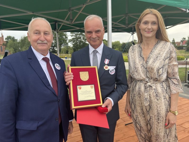 Mieszkańcy i goście nie szczędzili mu dobrych słów i prezentów. Senator Lidia Staroń odznaczyła burmistrza Zapadkę medalem Senatu.