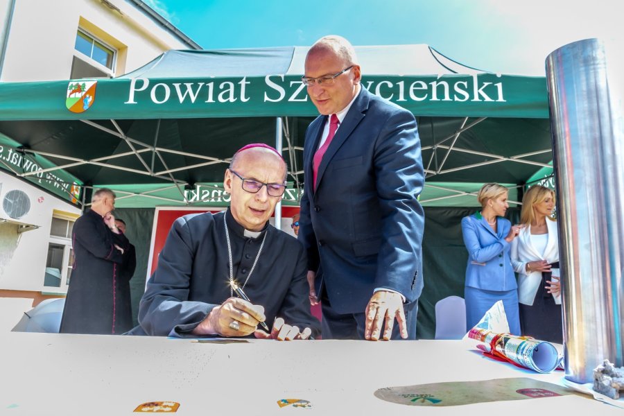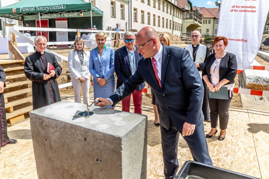 W poniedziałek uroczyście wmurowano kamień węgielny pod budowę nowego skrzydła szpitala w Szczytnie. Pod murami szpitala znajdzie się też kapsuła czasu, do której zapakowano między innymi numer „Tygodnika Szczytno”, monety, czy podpisany akt erekcyjny.