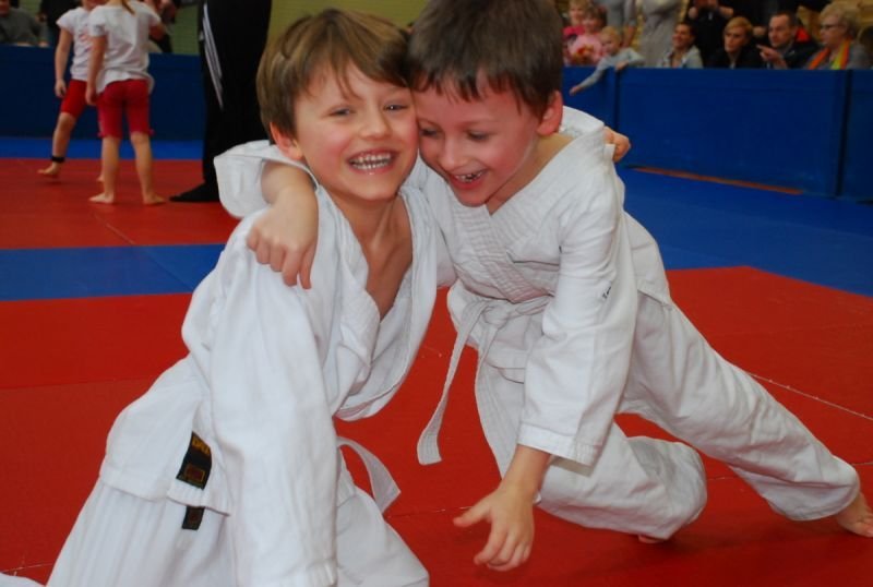 Pierwsze do rywalizacji ruszyły przedszkolaki, które dzięki firmie Novum ćwiczą, pod okiem trenerów Katany, w hali przy ul. Chrobrego w Szczytnie. - Były to chyba najbardziej emocjonujące zawody, bo zarówno maluchy, jak i ich rodzice brali udział w takiej imprezie po raz pierwszy - podsumowuję organizator Jacek Szewczak. - Liczyła się zabawa, nie wynik.