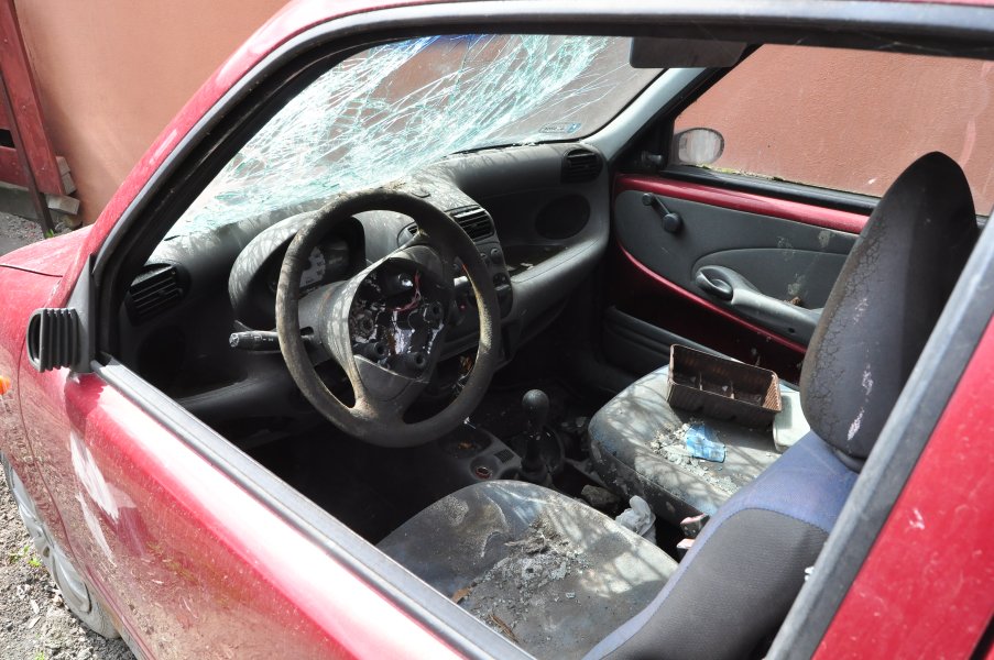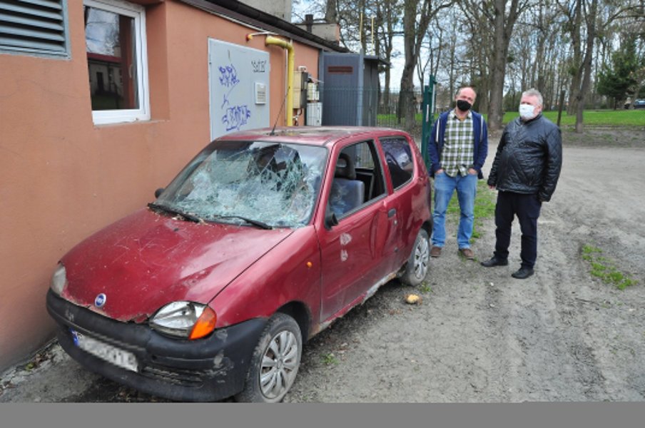 - Ci jednak rozkładają ręce twierdząc, że nic nie mogą zrobić – mówi Zbigniew Chrapkiewicz, mieszkaniec bloku przy ulicy Śląskiej. - A ten wrak naprawdę stwarza zagrożenie. Niemal dotyka ściany kotłowni gazowej. Potrzaskane szyby, rozkradzione elementy, ale akumulator, czy bak z paliwem jest. Co się stanie, gdy ktoś na przykład rzuci nieodpowiedzialnie niedopałek papierosa, lub specjalnie, dla żartu podpali ten samochód? Wariatów nie brakuje. Moment i tragedia gotowa. Inna rzecz, że samochód w takim stanie może i sam się zapalić.