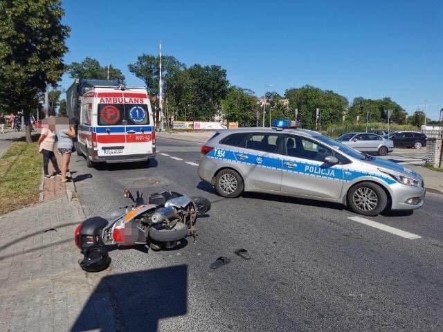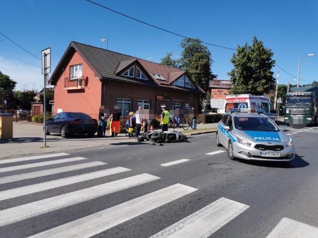 Na ulicy Skłodowskiej-Curie w Szczytnie samochód osobowy potrącił motorowerzystę. 61-letni mężczyzna z urazem głowy trafił do szpitala w Olsztynie. Na miejscu wypadku wciąż pracują policjanci.