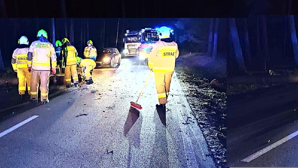 - Kierowca najprawdopodobniej zbyt późno zauważył na drodze przeszkodę i po prostu najechał na powalony konar drzewa– mówi kapitan Paweł Kozłowski z KP PSP w Szczytnie. - Nasze działania polegały na zabezpieczeniu terenu, oświetleniu. Usunęliśmy drzewo z drogi, zneutralizowaliśmy też płyny eksploatacyjne, które wylały się z auta na drogę.