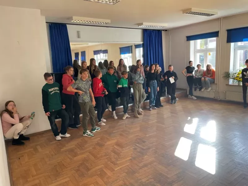 Na zakończenie młodzież wzięła udział w warsztatach prowadzonych przez autorów sztuki.