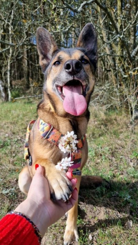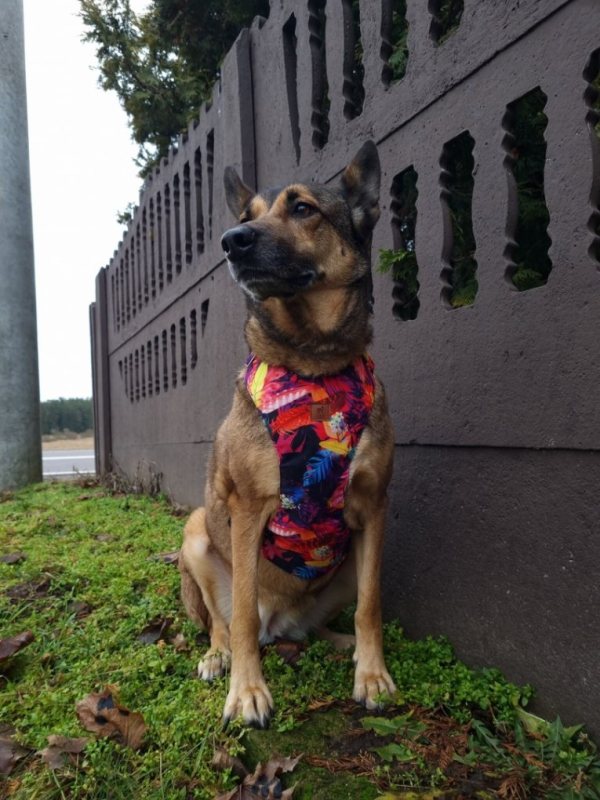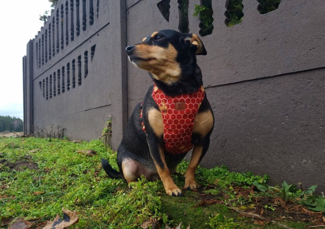 Jest tego sporo. Ale to masówka, taka dość nudna na dłuższą metę. Owszem, te rzeczy lepiej lub gorzej działają, ale chciałam, żeby moje sunie miały coś wyjątkowego, indywidualnego, coś ekstra, bo na to zasługują. Szukałam, ale nie mogłam niczego znaleźć. Dlatego postanowiłam uszyć im sama. Zaczęłam szukać materiałów w pasmanteriach w Szczytnie, ale wyboru praktycznie na takie produkty nie było. Dopiero po przeszukaniu chyba wszystkich pasmanterii w Olsztynie znalazłam coś, co by mi odpowiadało. Znalazłam jakieś okucia kaletnicze, też w Olsztynie. Przyjechałam do domu i siadłam do maszyny do szycia, którą mieliśmy w domu… Było ciężko, ale się udało. Zrobiłam kilka rzeczy. Potem wstawiłam je do internetu na swojego facebook’a. I tak to się zaczęło.