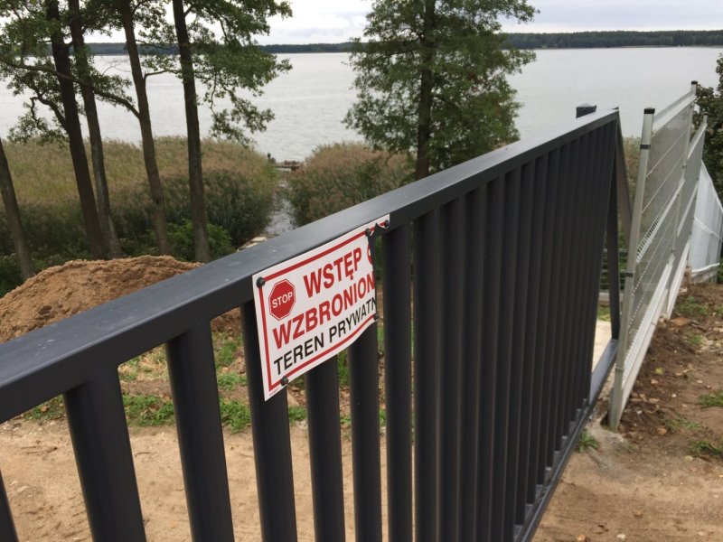 Zaczęło się, gdy w zeszłym roku nabywca tego gruntu przystąpił do rewitalizacji działki. Wykarczował większość drzew i wszystkie krzaki. Wyrównał teren i zasiał trawę, także na części działki znajdującej się tuż nad jeziorem, gdzie wcześniej postawił „prywatny”, niewielki pomost. Z „buszu” wyłoniła się bardzo atrakcyjna i duża parcela. Wiosną jej właściciel kontynuował prace. Rozpoczął stawianie panelowego ogrodzenia wokół całej nieruchomości, drogę wygrodził słupkami i sznurkiem. Na tym jednak nie koniec. Wielkie było zdziwienie okolicznych mieszkańców, gdy niedawno na wjeździe i wyjeździe z działki, czyli w dwóch miejscach w poprzek drogi pojawiły się okazałe, przesuwane bramy.