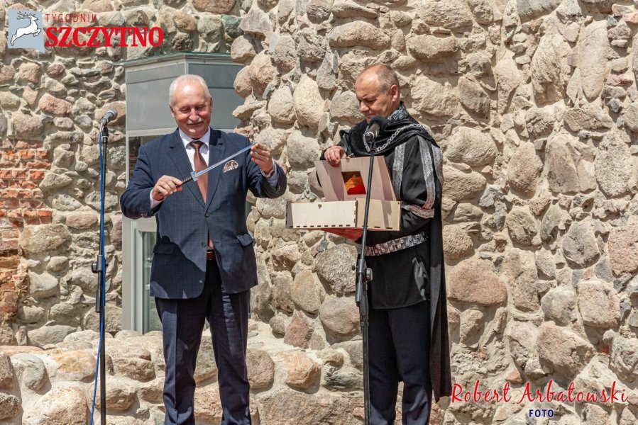 Burmistrz podziękował też Dariuszowi Bartonowi - wojewódzkiemu konserwatorowi zabytków, Wiesławowi Gołaszewskiemu - prezesowi firmy Rombud, która realizowała inwestycję oraz Gustawowi Brzezinowi – marszałkowi województwa. Otrzymali oni w podzięce symboliczne miecze.