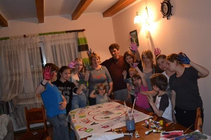 Jak to się stało, że zostaliśmy rodziną zastępczą? W pewnym momencie trafiła do nas moja siostrzenica. Miała 15 lat, przyjechała na wakacje. Po wakacjach zapytała mnie czy może z nami zostać, ponieważ nie chce wracać do domu, bo tam nie ma łatwo itd. Została w naszym domu, oczywiście po uzgodnieniu tego z jej rodzicami. Wychowała się u nas, wyszła za mąż... Po jakimś czasie, jakos tak w 2001 roku, zamieszkała z nami siostrzenica mojego męża. Dla tej dziewczynki tworzyliśmy formalną już rodzinę zastępczą. Jak już ją do nas wzięliśmy, to musieliśmy jej znaleźć szkołę, miała nieskończoną pierwszą klasę w ogólniaku, a była bardzo zdolna. Szkoda by było, aby się dalej nie uczyła. W wakacje jeździłam po szkołach, ale nic nie mogłam załatwić, już było po tych rekrutacjach... Jak jechałam z powrotem do domu, zobaczyłam napis "Centrum Pomocy Rodzinie". Pomyślałam, że tam muszą mi pomóc. Poszłam tam i dowiedziałam się, że gdybym była rodziną zastępczą, to na pewno uzyskałabym pomoc. Zapytałam czym jest ta rodzina zastępcza. Wytłumaczono mi, co to takiego i podjęliśmy z mężem decyzję, że zakładamy sprawę i zostajemy dla tej dziewczyny rodziną zastępczą. Tak się zaczęła ta przygoda... Zapytano nas, gdy już ta dziewczyna była pełnoletnia, czy nie chcielibyśmy też przyjąć do siebie innych dzieci, nie tylko tych z nami spokrewnionych. Pomyśleliśmy: dlaczego nie? W 2005 roku przeszliśmy szkolenie I od 2006 roku jesteśmy rodziną zastępczą zawodową dla Ostródy. W tym samym roku dostaliśmy pierwsze dwie dziewczynki, dwa miesiące później kolejne pięcioro dzieci... Do tego jeszcze miałam swoje dwie córki, więc nie było łatwo. Po zmianie przepisów zostaliśmy Rodzinnym Domem Dziecka, ale zasady zostały te same. Było to w 2012 roku.