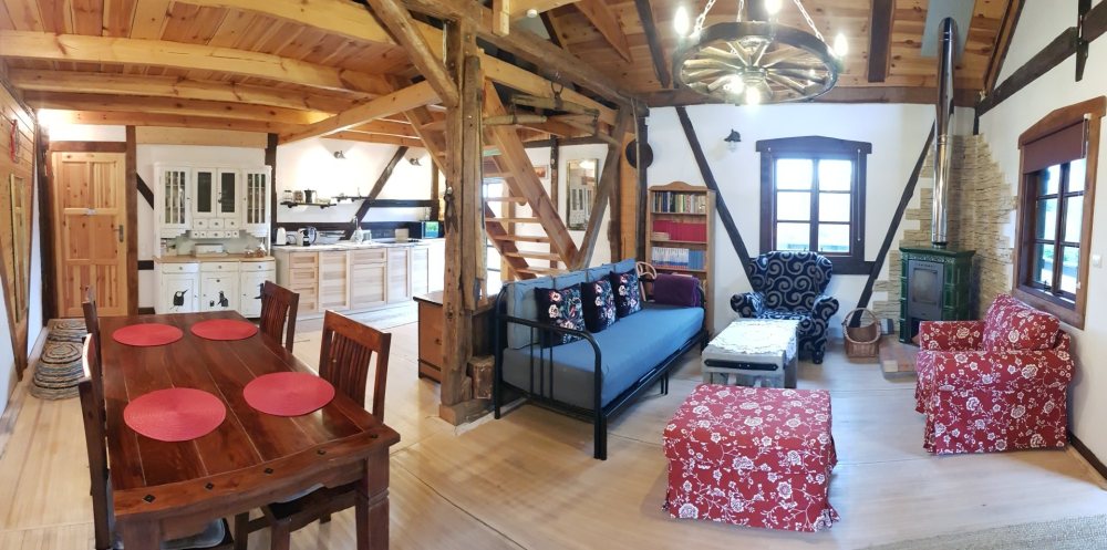 Przyjeżdżają osoby, które chcą się zupełnie oderwać od codzienności. Czasem powtarzam, że stworzyliśmy dobre miejsce dla dobrych ludzi. Podczas pobytu po prostu nic nie trzeba robić, wystarczy być i żyć. Początkowo mieliśmy do dyspozycji tylko stodołę z miejscem dla 4 osób, ale z różnych powodów było to za mało. Zbudowaliśmy więc jeszcze jeden dom "Ptasie trele 2", w lekkim oddaleniu, za strumykiem. Też drewniany, by za bardzo nie odbiegał od całości. Nie ma telewizorów, ale internet jest dostępny, bo w pandemii zrodziła się moda na wyjazdy połączone z pracą. Ktoś do 16. wykonuje swoje zawodowe zajęcia on-line, a później wypoczywa.