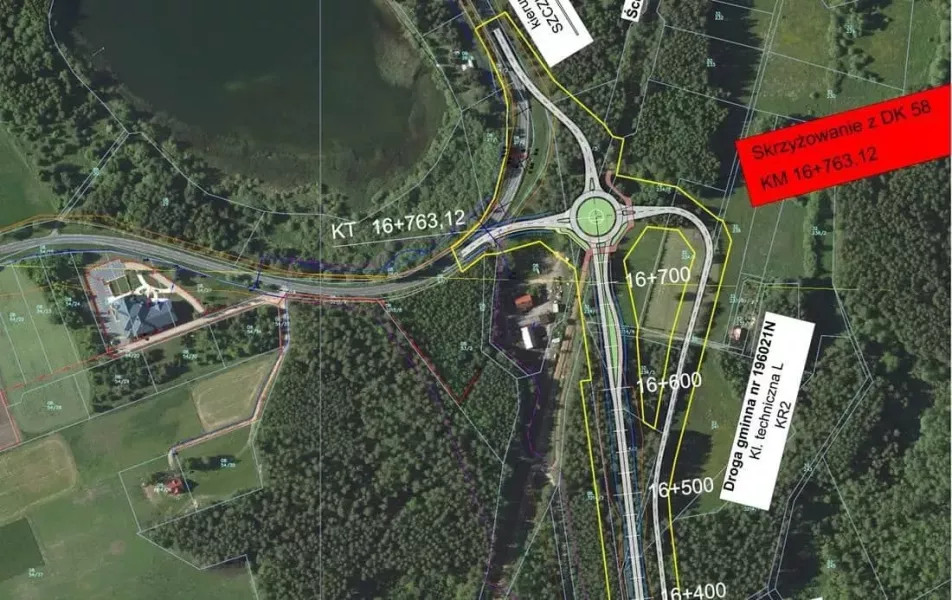 2. Zmiana układu komunikacyjnego na połączeniu obwodnicy z drogą w kierunku Mrągowa (zakwestionowane w trakcie KOPI)