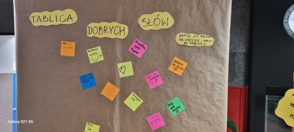 Jednym z najbardziej angażujących elementów obchodów okazała się tablica dobrych słów, gdzie każdy mógł zostawić pozytywną myśl na elektrostatycznej karteczce.