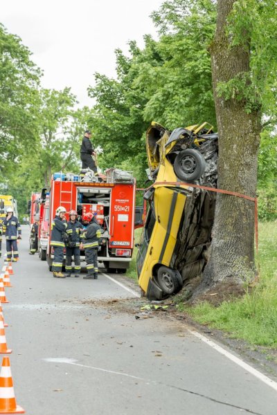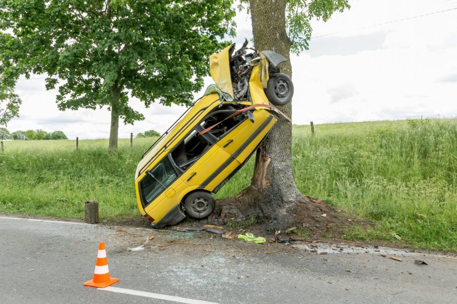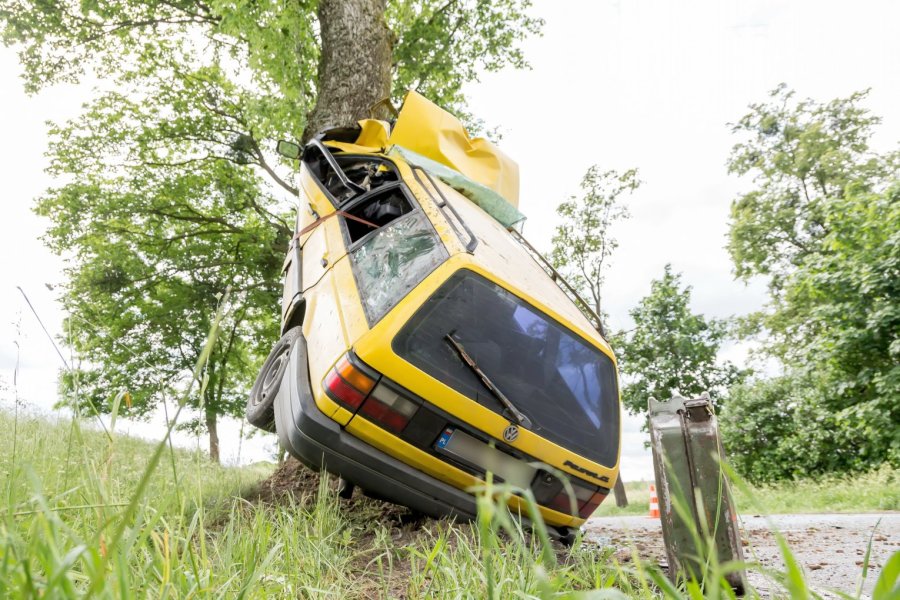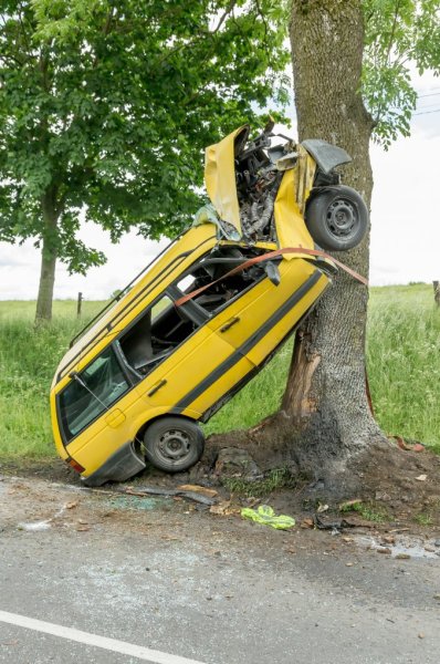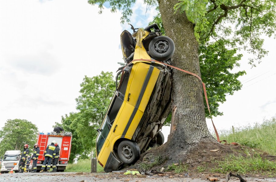 56-letni mieszkaniec naszego powiatu może mówić o dużym szczęści. W środę przed południem jego passat z dużym impetem uderzył w przydrożne drzewo. Auto dosłownie się wdrapało na pień. - Przy drzewie była specyficzna nierówność, wystający korzeń, który podbił samochód do góry w taki sposób, że auto dosłownie wdrapało się na drzewo i stanęło pionowo – mówią ratownicy. - I to chyba uratowało temu mężczyźnie życie, bo gdyby uderzył centralnie w drzewo nie miałby szans.