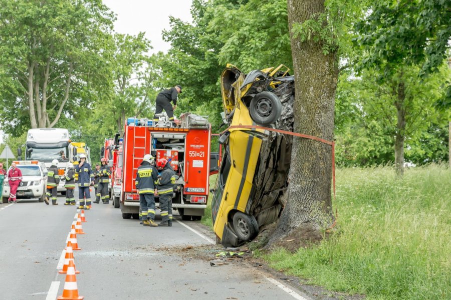 Uderzenie passata i tak było silne. Na tyle, że mężczyzna nie był w stanie samodzielnie wydostać się z samochodu. Był zakleszczony. Z auta wycinali go strażacy.