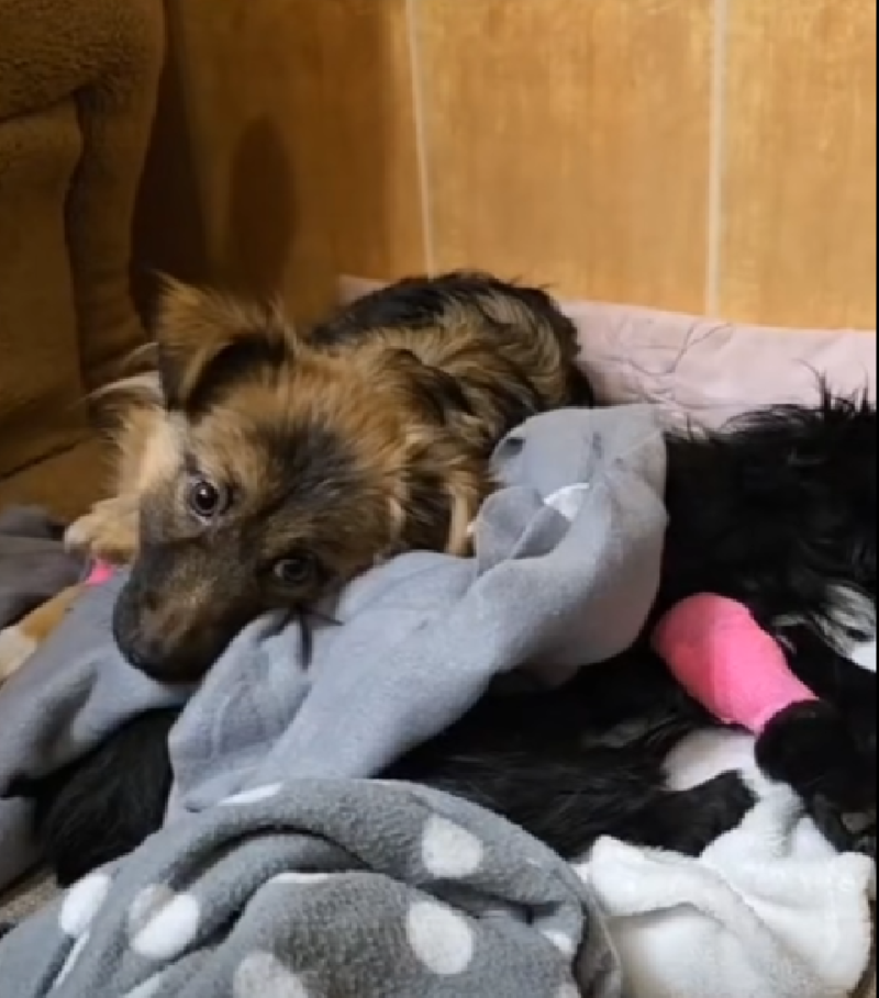Na miejsce wezwano patrol policji i ruszono do lecznicy weterynaryjnej w Szczytnie. Psy były w stanie skrajnie niedożywione i zaniedbane. Ważyły odpowiednio 3 i 4 kilogramy przy docelowej wadze 8-10 kg. Ich temperatura ciała spadła do 34 stopni. Dodatkowo czarny pies miał oczopląs, rany głowy i wgłębienia w czaszce, które mogą wskazywać na fizyczne znęcanie się nad nim. Rozpoczęła się dramatyczna walka o życie: tlen, kroplówki, maty grzewcze. Przez wiele godzin ważyły się losy zwierząt. Dziś są bezpieczne pod opieką inspektorów i weterynarzy. Otrzymały symboliczne imiona: czarny - Prometeusz, brązowy - Odyseusz.