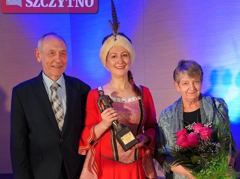 Hanna Zajączkiewicz z Jurandem. Starosta Jarosław Matłach wręczył statuetkę podczas koncertu w Szkole Muzycznej