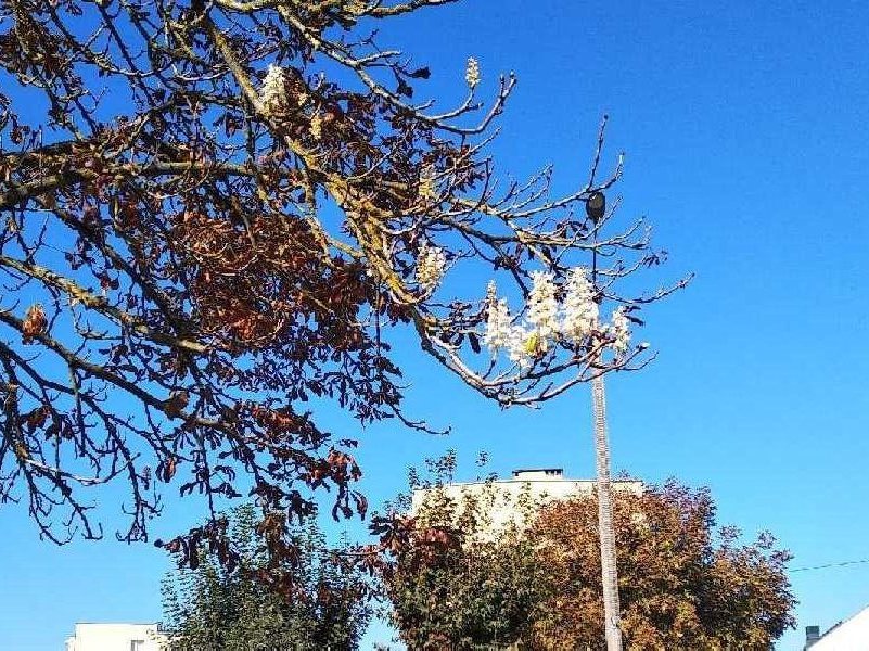 Nietypowe zjawisko zaobserwowała w niedziele pani Bożena ze Szczytna – kwitnące drzewo kasztanowca. - Byłam w szoku, bo o tej porze roku, to już raczej spadające kasztany można...