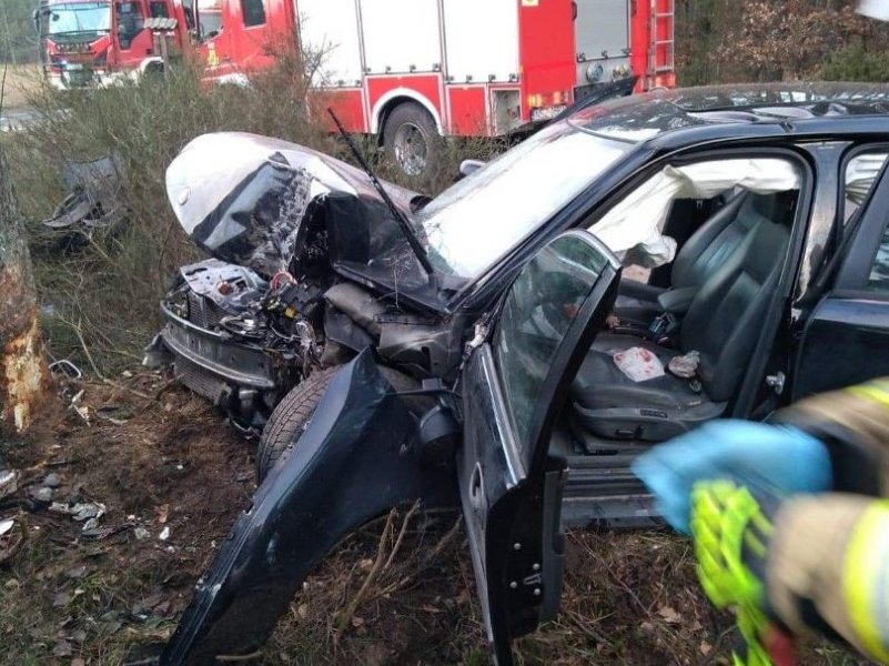 W okolicach Jerutek doszło dziś do groźnego wypadku. Na prostym odcinku drogi saab, którym kierowała 19-letnia kobieta zjechał z jezdni i uderzył w drzewo.