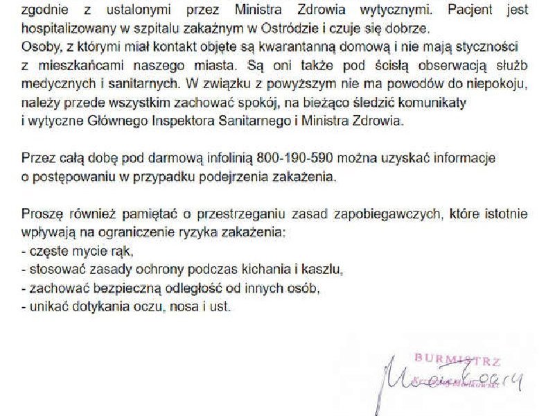 Oświadczenie Burmistrza Miasta Szczytno o przypadku wykrycia koronawirusa w jednej z okolicznych miejscowości.