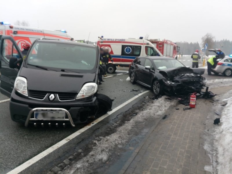 Cztery osoby trafiły do szpitala po kolizji, do której doszło dziś (3 lutego) w okolicach Świętajna. Zderzyły się tam renault trafic i subaru. Łącznie autami jechało sześć osób.